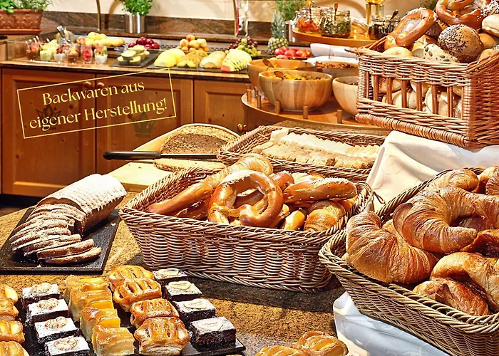 Sommer - Urlaubs- Und Wellnesshotel Füssen biedt een gezond buffet ontbijt.